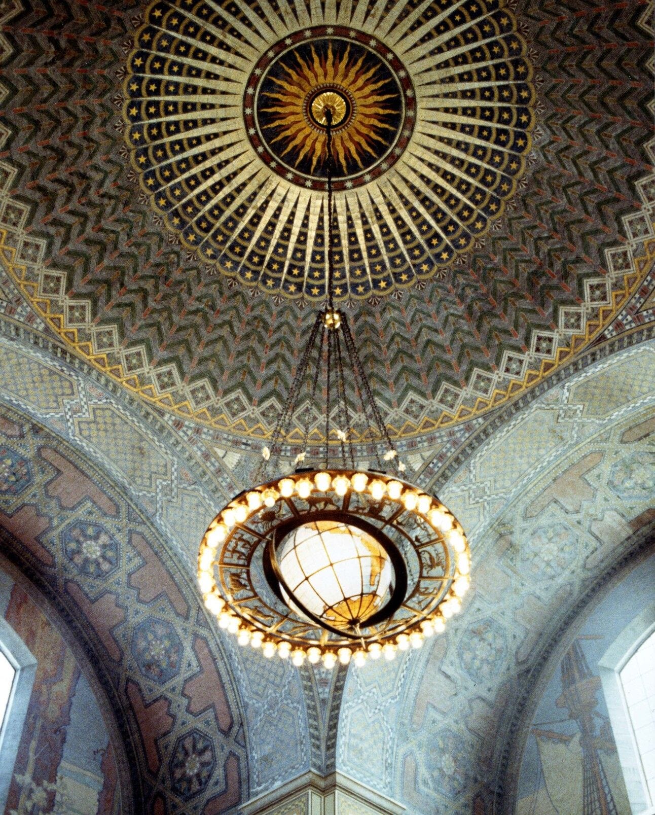 Its lobby is a treasure in itself, gleaming with marble, brass, and a huge (stunning) mural ceiling, which was a work of artist, Hildreth Meière.