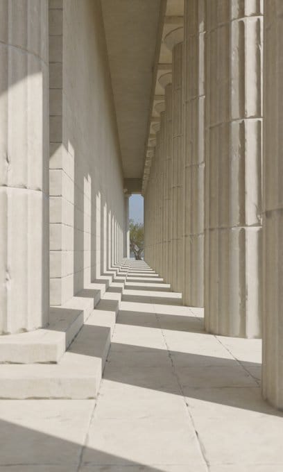 Column Inclination: The columns lean inward slightly. If extended upwards, they would theoretically meet above the structure. This inclination creates a sense of stability and counteracts the appearance of the columns falling outward.